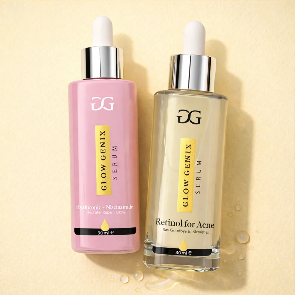 This bundle includes Retinol for Acne Serum to help reduce breakouts and refine skin texture, Vitamin C 10% Serum to brighten skin and fade post-acne marks, and Hyaluronic + Niacinamide Serum to deeply hydrate and soothe the skin while strengthening the skin barrier.